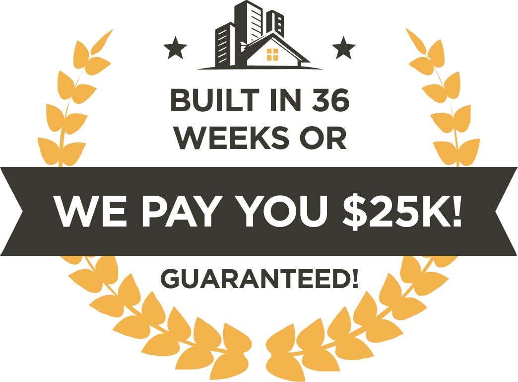 When it's time to build, you’ll feel the difference. The same team that designed and planned your home is managing construction so nothing falls through the cracks. There are no delays, no last-minute hiccups, and no compromises on quality. Your home is completed in just 36 weeks, and if we miss that date, you get $25,000 cash. It’s in the contract.